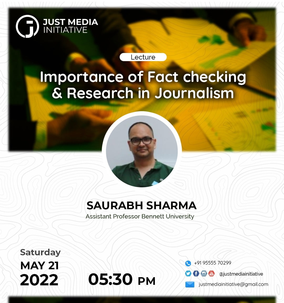 Just Media Foundation lecture series : Importance of Fact Checking and Research in Journalism Speaker: SAURABH SHARMA Assistant Professor Bennett University
