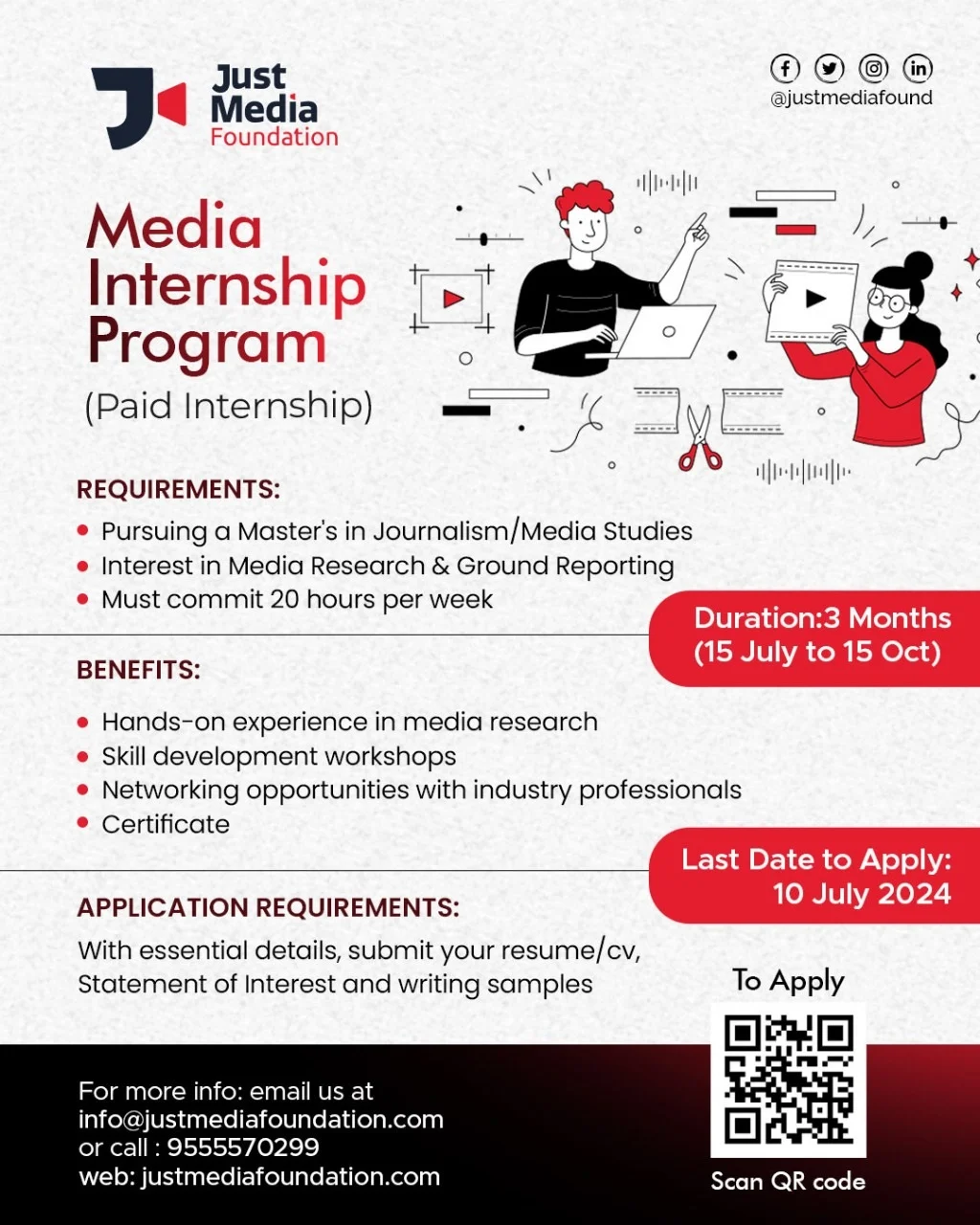 Just Media Foundation Calls for Internship in Journalism and Media Studies